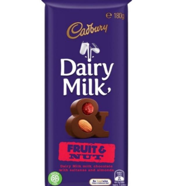 Cadbury Dairy Milk Fruit Nut Chocolate Block Australia 180g