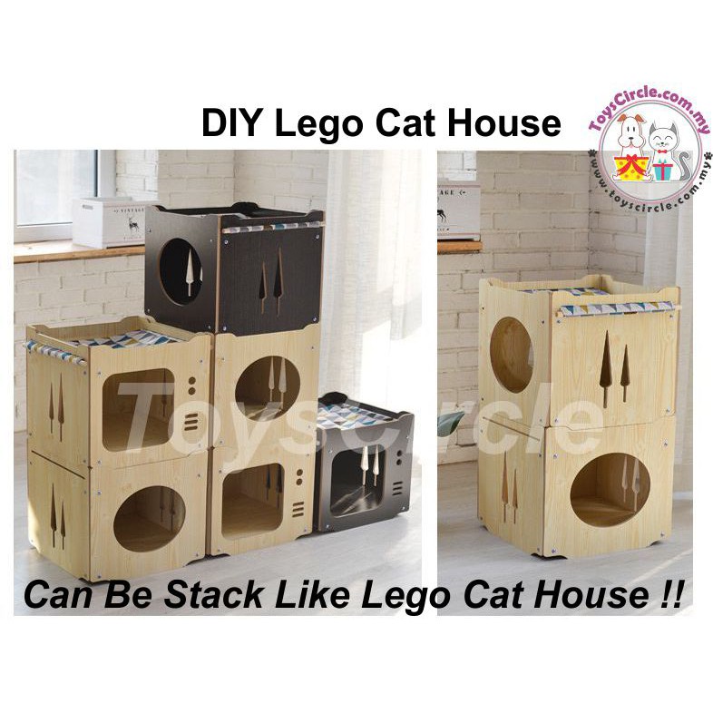 Ready Stock Diy Lego Pet Cat Wooden House With Hamoock