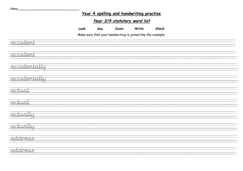 Year 4 Statutory Words Handwriting Practise Worksheets Teaching