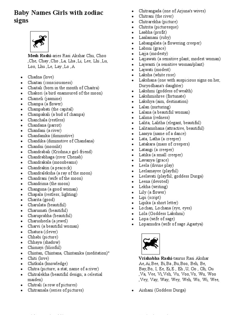 Nakshatra Girls Name List Pdf Free Download