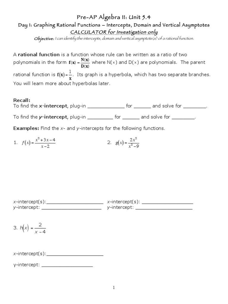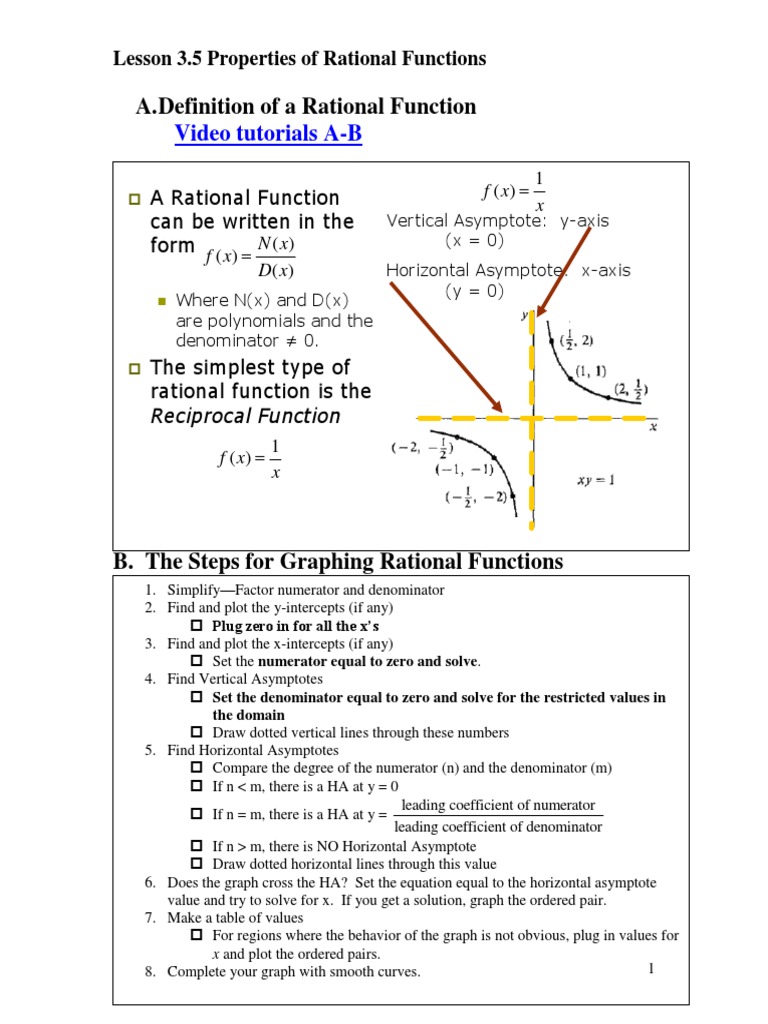 Lesson 3 5 Video Tutorials Rational Functions Pdf Asymptote