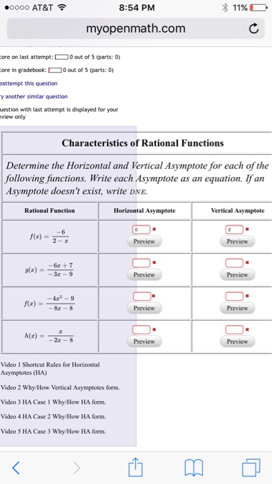 Solved Oooo At T令 8 54 Pm Myopenmath Com Ore On Last At