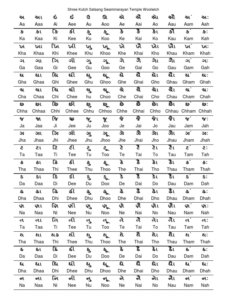 Alphabets In Gujarati Script