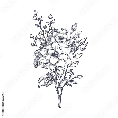 Hand Drawn Flower Bouquet In Sketch Style Vector Plants Buy