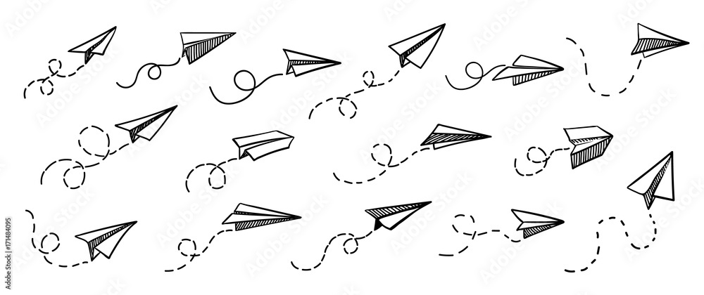 Paper Airplane Icons In Hand Drawn Sketch Style Paper Airplane Drawing Paper Airplanes Airplane Illustration