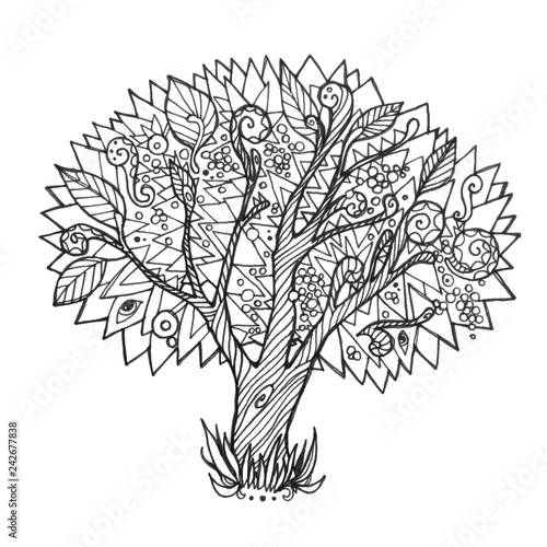 Hand Drawn Illustration Doodle Tree On A White Background Nature