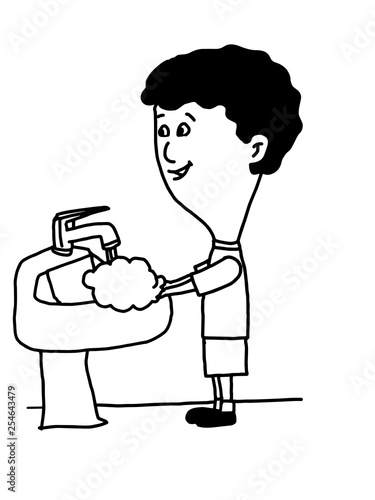 Cartoon Cute Child Boy Washing His Hands Illustration Black White