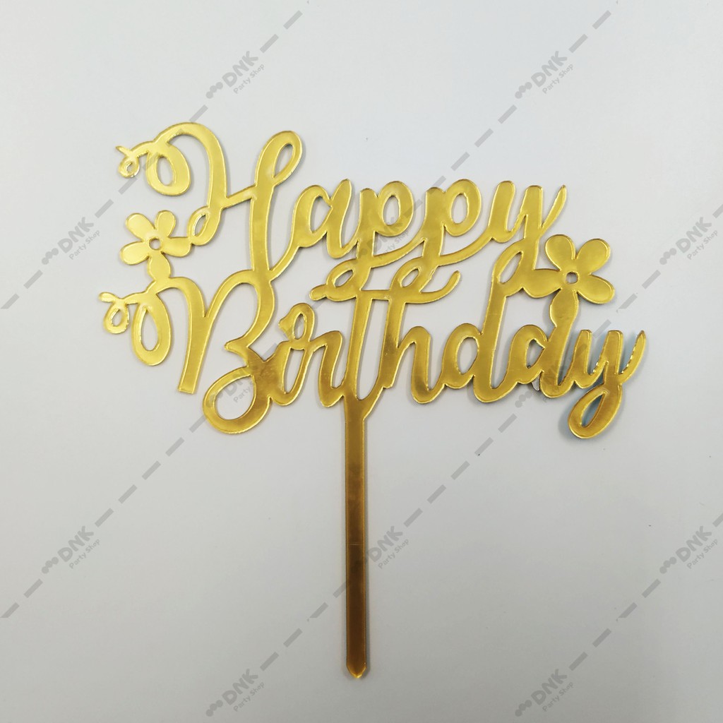 Gold Happy Birthday Letter Design Acrylic Cake Topper Cute