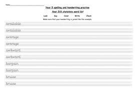 Year 5 Statutory Words Handwriting Practise Worksheets Teaching
