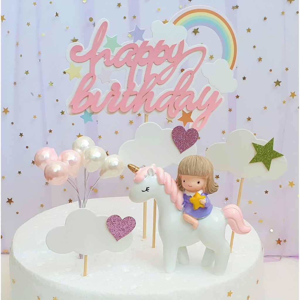Izoel Unicorn Cake Topper Kit Cloud Rainbow Balloon Happy Birthday