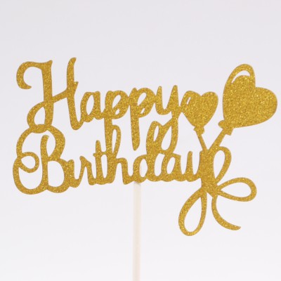 Sunbeauty Happy Birthday Cake Topper Gold Glitter Calligraphy
