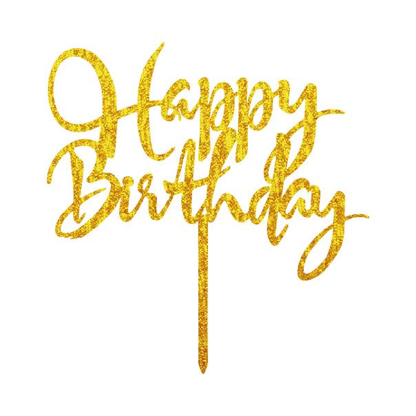 Happy Birthday Acrylic Cake Topper Gold Glitter