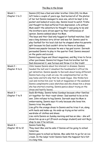 Boy In The Dress By David Walliams Summary Teaching Resources