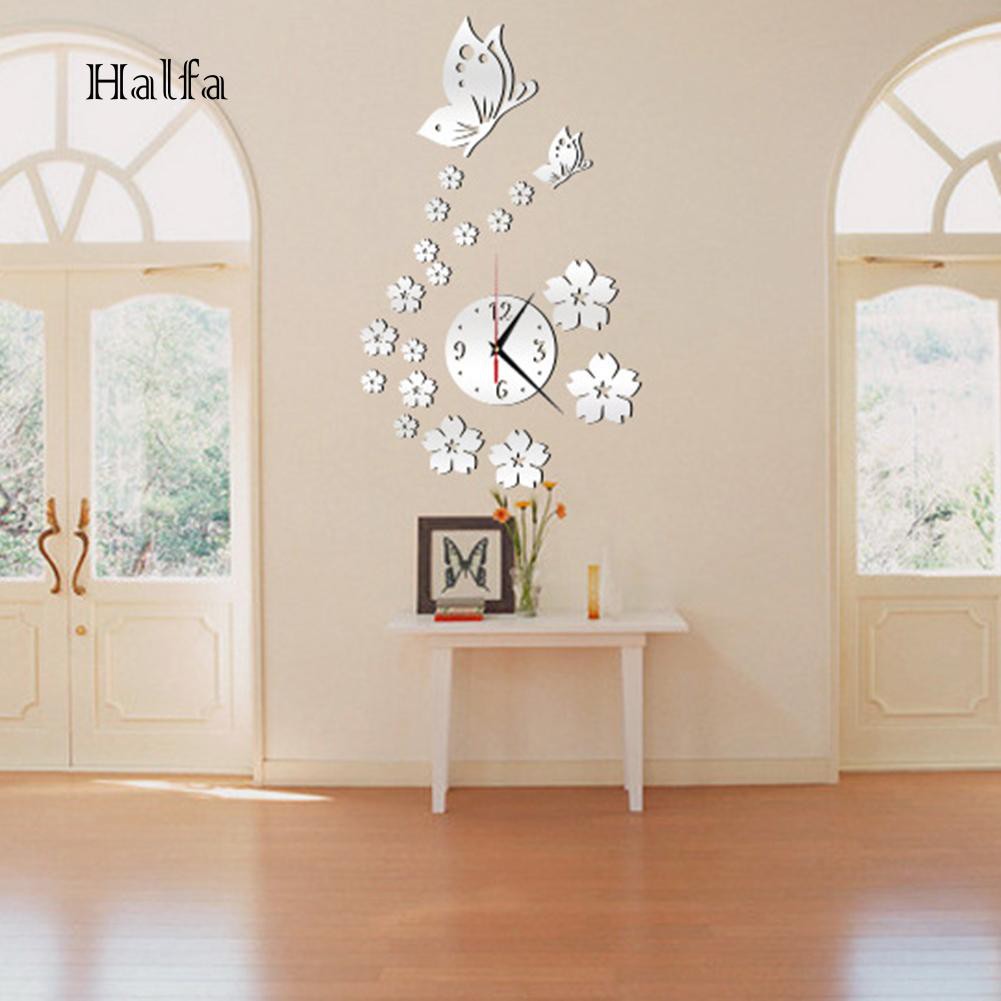 Ha Home Room Modern Decor 3d Butterfly Flower Wall Clock Mirror