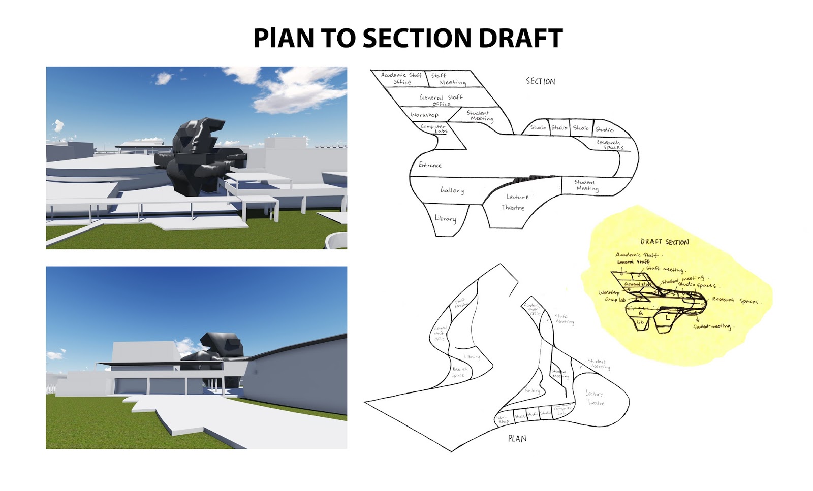 Isaac Kim Exp 3 Plan To Section Draft Zaha Hadid Riverside Museum